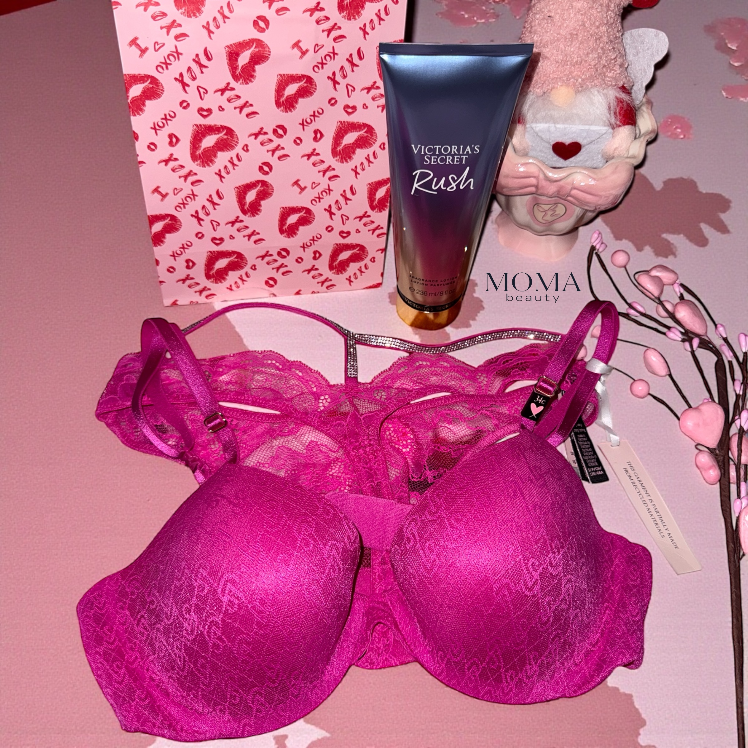 Подаръчен комплект Луксозен сутиен & Прашки & Лосион за тяло 💝Rush & Торбичка VS