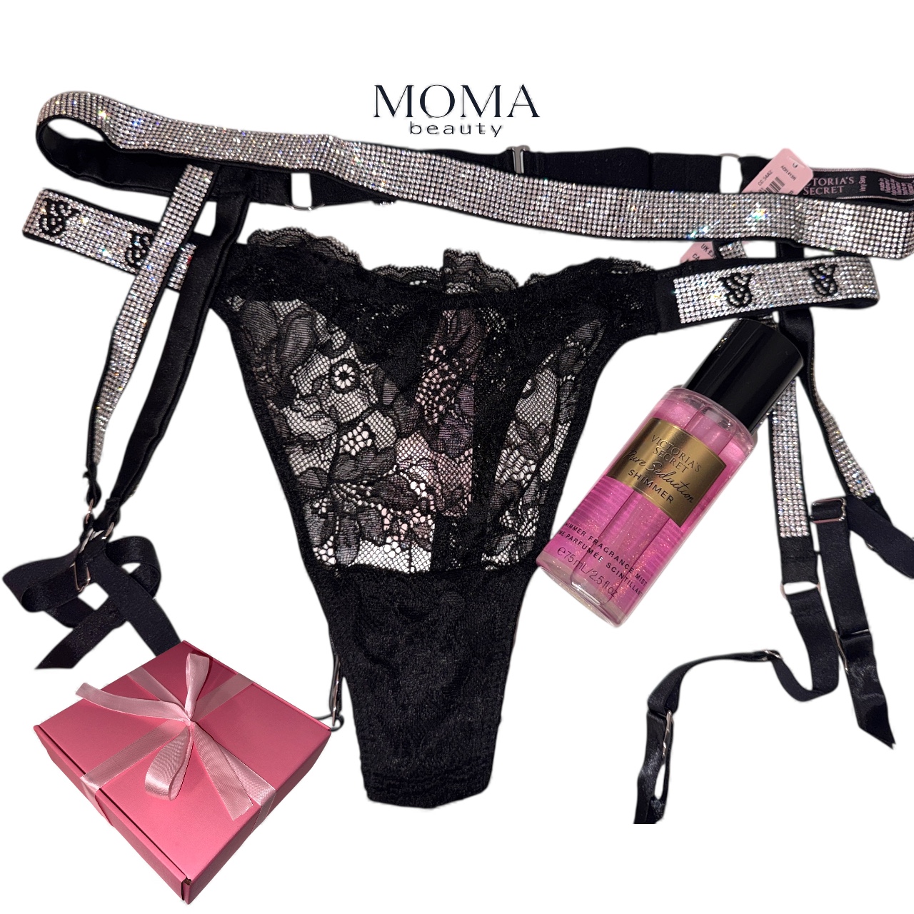 💝Подаръчен комплект Спрей за тяло💜Pure Seduction💜 § Прашки § Жартиери § Кутия💝